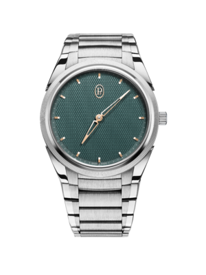 تتميّز ساعة TONDA PF Micro-Rotor Steel No Date 10Ten Labs × CWC Heritage Edition بميناء باللون الأخضر القوي “Racing Green” يتألّق بتفاصيل من الذهب الوردي، وهي محدودة الإصدار في 40 قطعة فقط.