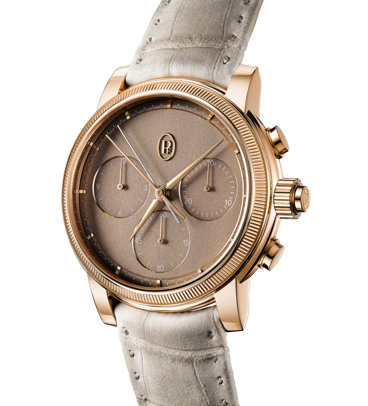 The movement of the TORIC Chronograph Rattrapante in 18ct rose gold beats at a high frequency (5Hz) and incorporates a double column wheel. Its structural elements, skeletonized to suggest an arabesque, leave ample room for visual appreciation of its moving components.