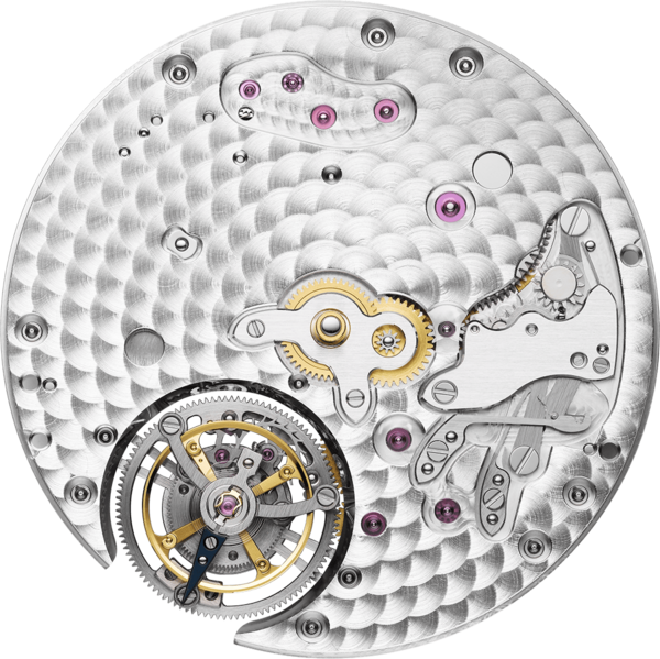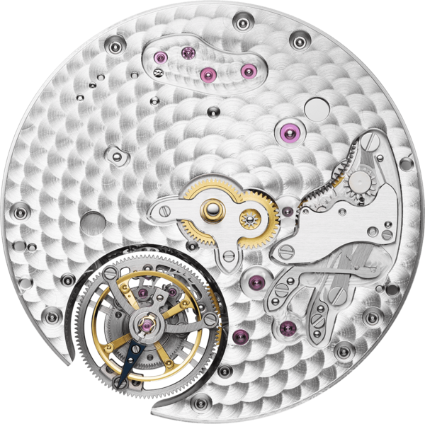Intégralement conçu, produit et assemblé par la manufacture Parmigiani Fleurier, le calibre PF517 de 32.6 mm de diamètre est un superlatif. Ce mouvement à remontage automatique par micro-rotor en platine 950, qui intègre un tourbillon volant, n'excède pas 3.4mm d'épaisseur. Battant à 21'600 A/h pour 48 heures de réserve de marche, il est terminé selon les standards élevés chers à Parmigiani Fleurier : décoration Côtes de Genève circulaires, perlage et angles chanfreinés. Son pedigree le classe parmi l’élite.