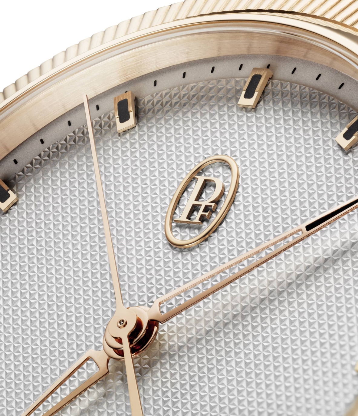 Offered in a choice of steel or 18ct pink gold, the TONDA PF Sport Automatic has been designed as the active counterpart to its TONDA PF siblings. With a case measuring 41mm in diameter, this model is highly wearable, whether on a bare wrist or under a shirt cuff. While its lineage within the PF collection is immediately evident, this timepiece is distinguished by a number of subtle details that affirm its casual sporting-chic identity. Key signatures of the TONDA PF Sport include the bezel, dial, and strap.