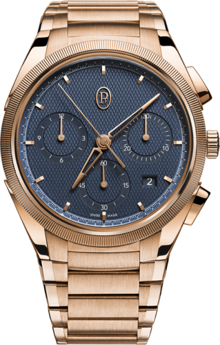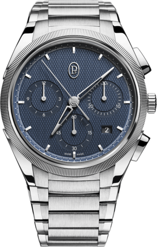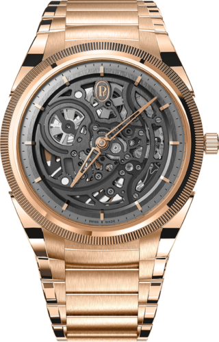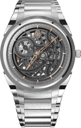プラチナ製マイクロローターを備えた3mmの超薄型自動巻きムーブメント、キャリバーPF703。小型のローターは、従来の半月型のローターとは異なり、ムーブメントの厚みと一体化しています。これにより厚みを大幅に削減したトンダ PF マイクロローターは、装着した状態でわずか7.8mmの薄さを実現し、快適さと上品さを兼ね備えています。