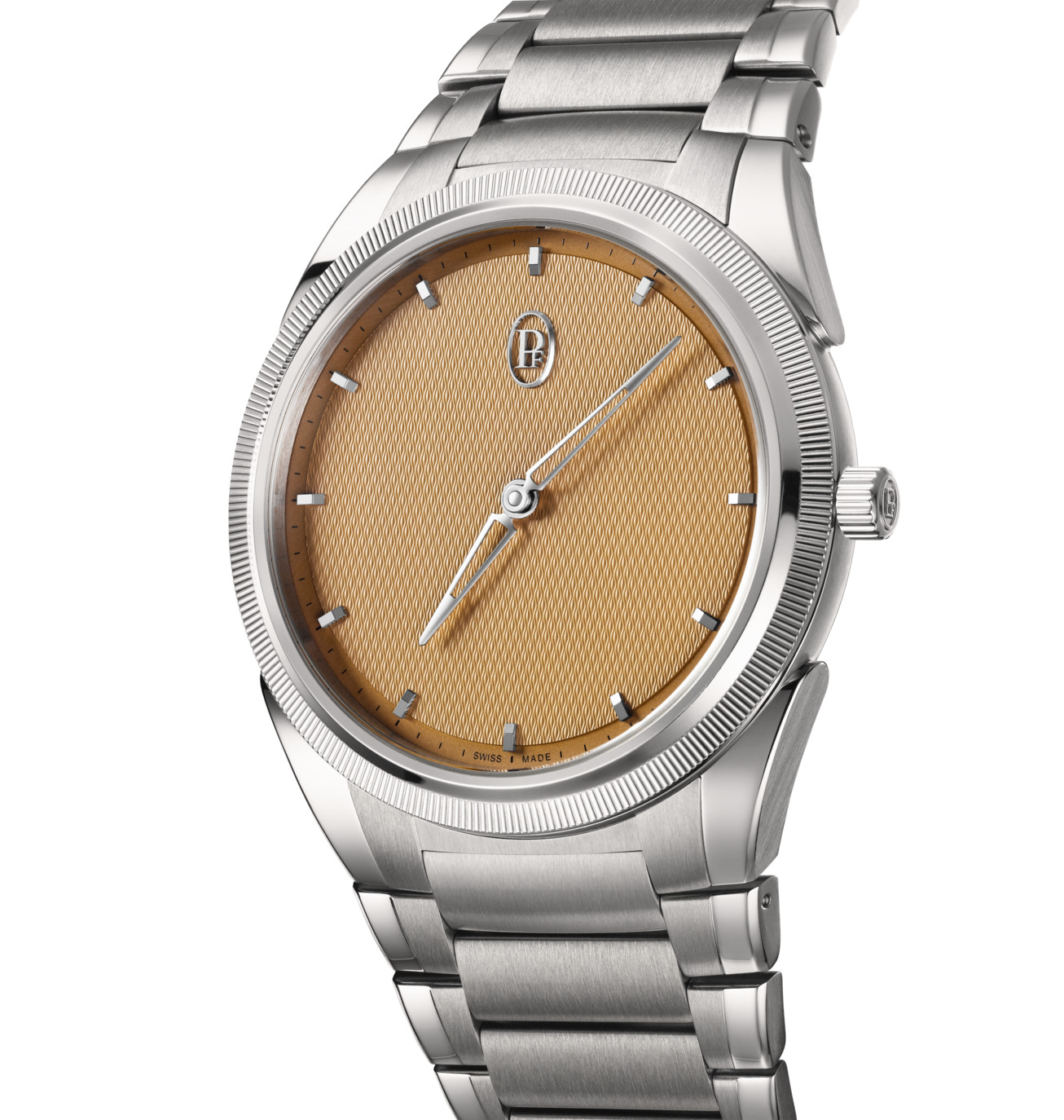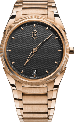 The TONDA PF MICRO-ROTOR with its Golden Siena dial, adorned with a magnificent Grain d’Orge guilloché pattern, unveils time in its purest expression—free from the distraction of a date window. Every detail has been meticulously crafted, blending form and function in harmonious balance to create a truly wearable piece of art.