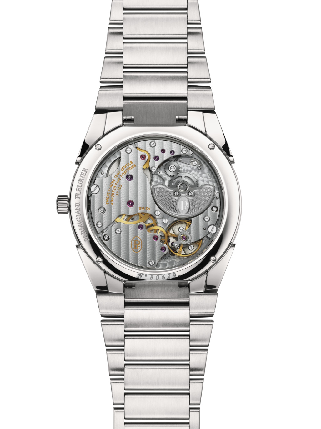 At the heart of the watch is the automatic PF703 calibre, equipped with an extraordinary micro-rotor crafted in platinumgand delicately adorned with Grain d’Orge guilloché. Seamlessly integrated into the movement’s main plate, this micro-rotor enables exceptional thinness (just 7.8 mm thick), while ensuring optimal performance with a 48-hour power reserve. Its sophisticated construction ensures precise automatic winding while preserving an elegantly slender and discreet profile, perfectly encapsulating the Parmigiani Fleurier ethos, a silent excellence reserved for discerning connoisseurs.